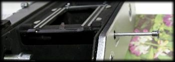 刃がわかりますか? フィルムを途中で切るフィルムカッターが付いています。 昔はフィルムが高価でしたからね。 |